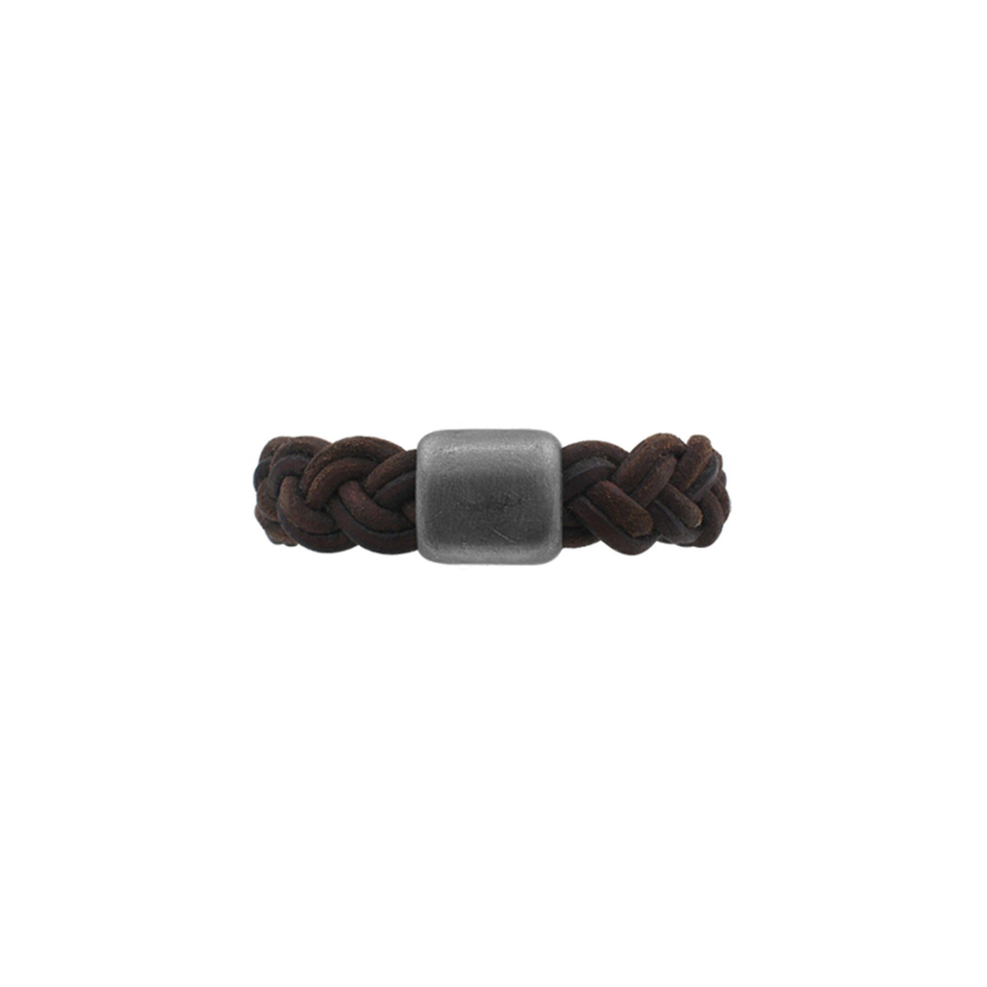 Bracelet Leather (3mm) Mat Brown w/ Stable Magnetic Lock Iced