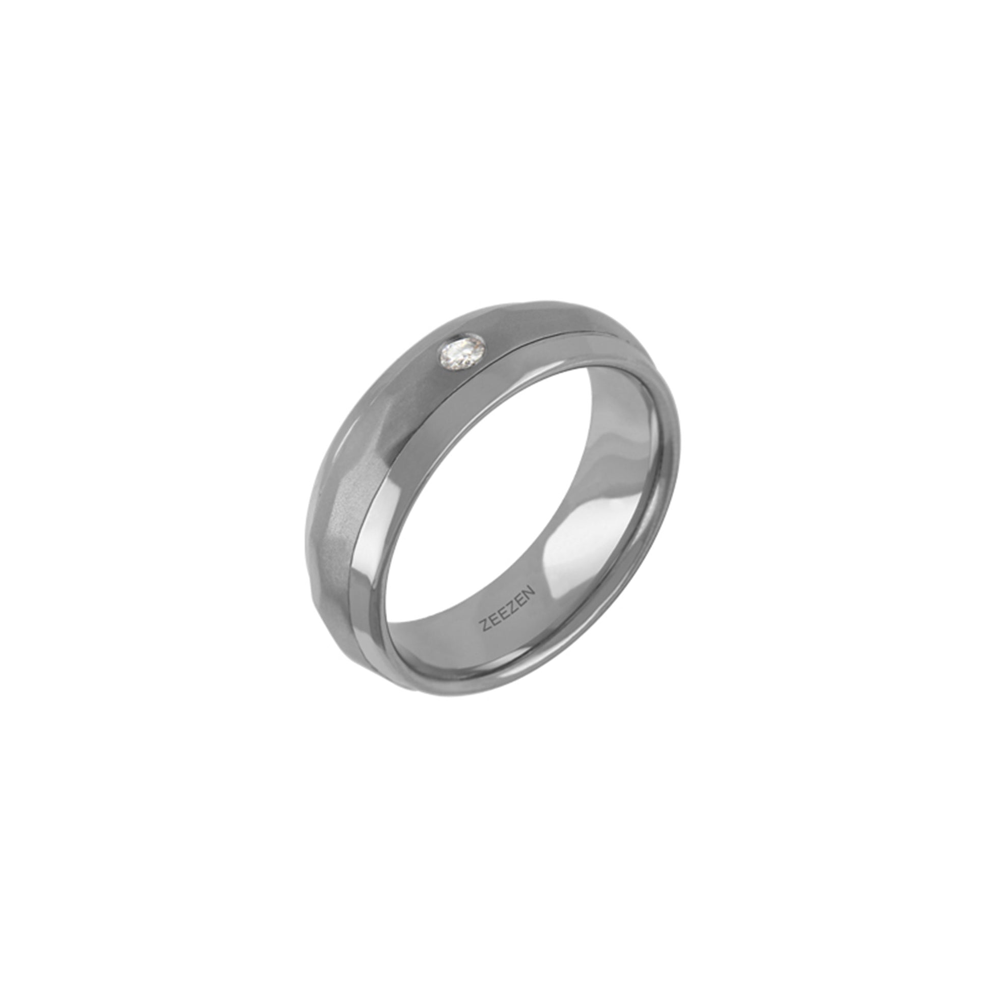 Titan Ring w/ diamond (1x.06ct. White) Large Hammered/Poished